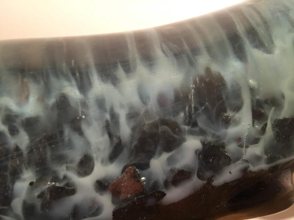 クジラは大海を自由に回遊するが、陸地に近づき過ぎると座礁し息絶えてしまう。この有様を自ら輪廻を抜け出せない魂の器に見立て、六頭のクジラの内部に六道輪廻の世界観を表現した。